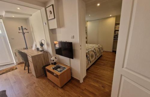 Offering a garden, Studio Drancy avec Jardin 45 m2 provides accommodations in Drancy. With garden views, this accommodation offers a terrace. Free Wifi is available throughout the property and Stade de France is 5.2 miles away. The air-conditioned apartment consists of 1 bedroom, a living room, a fully equipped kitchen with a dishwasher and a coffee machine, and 1 bathroom with a shower and a hair dryer. Towels and bed linen are offered in the apartment. For added privacy, the accommodation features a private entrance. Gare de l'Est is 6 miles from the apartment, while Gare du Nord is 6.3 miles from the property. Paris - Charles De Gaulle Airport is 6.2 miles away.