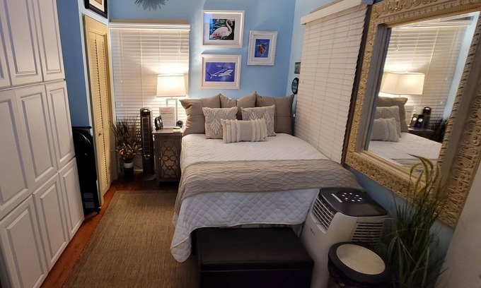 SAFE and POPULAR LOCATION! This private studio has a full size bed, a fully equipped kitchen, 1 bath and is approximately 350 square feet. It's small but it's cute, comfortable, clean, and full of Jazzy, NOLA decor. It is in a safe area of New Orleans. My vacation rental is located several houses off the FAMOUS Magazine Street and within walking distance to LOTS of restaurants, boutique stores, art galleries, coffee shops, bars, grocery stores, banks, drug stores, the St Charles streetcar and RTA bus stop. It is a 10 to 15 minute Uber ride to the French Quarter, but there is so much to do here you might not make it there. 😊 If you are driving here, this unit only has on street parking. There's almost always a spot within half a block especially on Constance street. Looking forward to possibly hosting you. :)