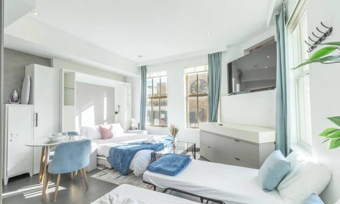 Step into this stunning Studio apt with 3 beds bringing you central to everywhere. 5 min from train that rides 30 min into NYC Penn. Prudential Ctr across the street. EWR Airport, Wholefoods, Chipotle, Starbucks, , Seton & Rutgers Univ, Hospitals, NJPAC are close by. Easy self-checkin