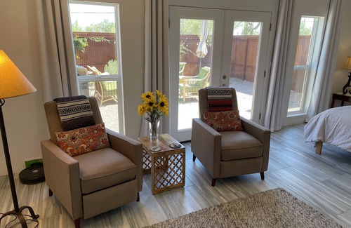 This is a brand new studio in a peaceful location away from the midtown traffic on 3.2 acres just at the edge of the Saguaro National Park. This is the quintessential Arizona experience with its lush cacti, mountain views, majestic saguaros, howling coyotes and picturesque sunsets. Enjoy the starry desert nights in the private, enclosed courtyard. The studio is quiet and secluded enough for a writers retreat, but the university, fine dining and downtown nightlife are just a short drive away. Lush desert forest only found in this region of the world surrounds you and the Desert Museum is just up the road, they built it out here for a reason!
