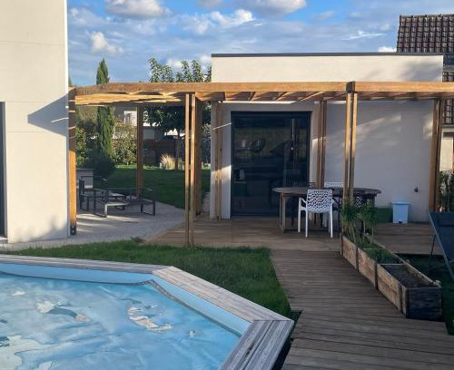 Studio indépendant offers accommodations in Spay, 4.9 miles from Le Mans Circuit and 6.5 miles from Antarès. This property offers access to a terrace, free private parking, and free Wifi. The vacation home also offers a saltwater pool and a garden for guests to relax in. This air-conditioned 1-bedroom vacation home comes with a dining area, a flat-screen TV, and a fully equipped kitchen with a microwave. Guests can enjoy a meal on an outdoor dining area while overlooking the garden views. For added privacy, the accommodation features a private entrance. With an outdoor fireplace and a picnic area, this vacation home offers plenty of opportunities to unwind. Solesmes Abbey is 26 miles from the vacation home, while Le Mans Exhibition Centre is 4.9 miles from the property. Tours Loire Valley Airport is 52 miles away.
