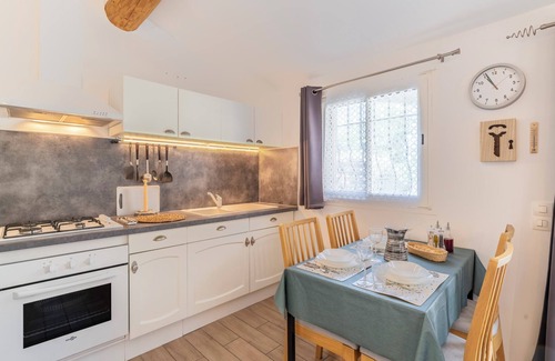 This holiday rental offers a private terrace with an electric plancha and access to a shared outdoor area with a heated pool (open from May to September, depending on the outside temperature, until 10:00 pm). A parking space is available on the property. Pets, smokers and event celebrations are not allowed. The hosts live on site. A secure shelter for bicycles is also available.