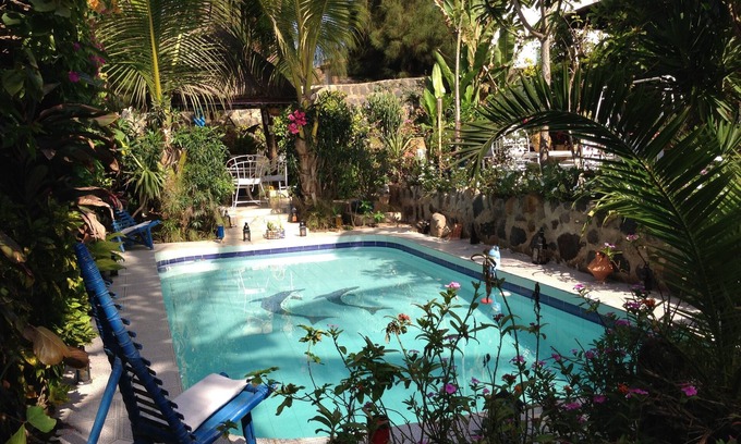 Your holiday studio is located 50m from the beach. Very comfortable, sumptuously decorated, in a beautiful tropical garden with African hut at the edge of a large pool and Jaccuzi
