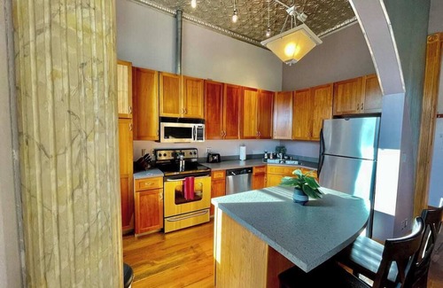Please note the potential for noise due to the location of the loft. Loft is located on the second floor of a downtown building. The first floor tenant is a local pub.