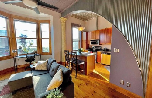 This beautiful loft space located in historic downtown Cedar Falls is perfect for a weekend getaway or a longterm visit to the Cedar Valley! Exposed brick walls and original wood floors show the character of this 1899 building! Located right on Main Street in Cedar Falls, you are literally steps away from local shops, eateries, breweries and nightlife.