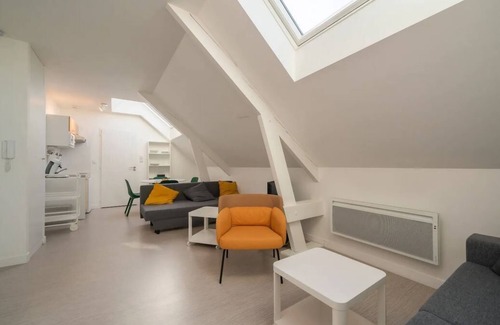 Nestled in Saint-Nazaire, this 1-bedroom, 1-bathroom vacation home brings it all within your reach. Fans of nature and the outdoors will love being 1 minutes by car from Bay of Biscay and 6 minutes from Plage de Villès-Martin. Your feet will make short work of the 10-minute walk to Les Halles de Pornichet or the 12-minute walk to Escal'Atlantic.