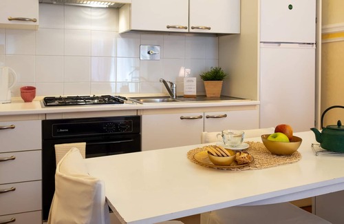 Finely furnished in shades of green, spacious and with beautiful exposed beams. The attic is equipped of living area, with fully equipped kitchen (dishes, fridge, oven) and sleeping area with double bed, ideal for 2 people, but can accommodate 2 more, using a comfortable sofa bed. Spacious bathroom with shower. Available for guests: wi-fi internet, LCD TV, fully equipped kitchen, fridge, oven, hairdryer and washing machine.