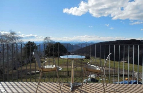 Enjoy this quiet One-room vacation apartment with terrace, long-distance view and kitchen surrounded by pure nature, halfway up Monte Generoso, 1070 meters above sea level. From here you can experience beautiful hikes and bike tours in the mountain landscape with various panoramic views and idyllic beech forests of Monte Generoso.