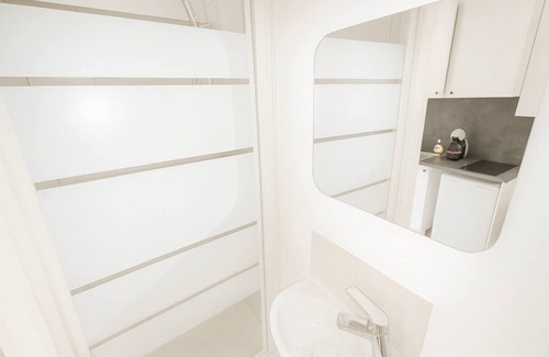 Ce studio moderne et fonctionnel offre tout le confort nécessaire : une cuisine équipée, un lit double douillet, et une salle de bain élégante avec douche à l’italienne.