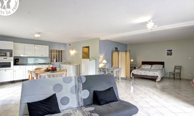 70 m² studio on the ground floor of an old stone farmhouse completely renovated, in which the owner lives. Large living room with 2 bay windows, dining area and lounge area (extra 90 cm bed). Shower room, separate toilet. The price includes sheets and heating. High-speed internet access via fiber. Shared land of 400 m² with courtyard and grassy area. Planfoy is renowned for its nature sports, it is a real crossroads of hiking trails, you can practice mountain biking, climbing, via ferrata ... In the village a Vival with bread depot, a butcher's shop, a café restaurant and producers' store. Cinema, lake, various leisure activities 5 km away in St Genest-Malifaux. Tree climbing 8 km away. Near Firminy and the works of Le Corbusier and Saint-Étienne with its legendary stadium and various museums. St Victor sur Loire (boat and beach), St Pierre de Boeuf (water sports on the Rhone), Pélussin, Malleval... Lyon, Clermont Ferrand and Le Puy to visit for the day.