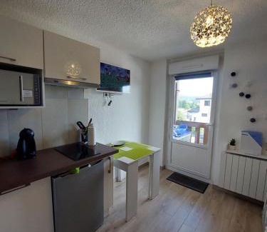 Studio rénové confort meublé 3 étoiles - Les Crêtets offers accommodations in Les Rousses, 28 miles from PalExpo and 28 miles from United Nations Geneva. This apartment provides free private parking, private check-in and check-out, and free Wifi. Outdoor seating is also available at the apartment. Providing a balcony with mountain views, this apartment also provides guests with a cable flat-screen TV, a well-equipped kitchen with a dishwasher, an oven, and a microwave, as well as 1 bathroom with a shower and a hair dryer. For added privacy, the accommodation has a private entrance and soundproofing. Skiing is possible within the area and Studio rénové confort meublé 3 étoiles - Les Crêtets offers ski storage space. Cornavin Train Station is 29 miles from the accommodation, while Jet d'Eau is 30 miles away.