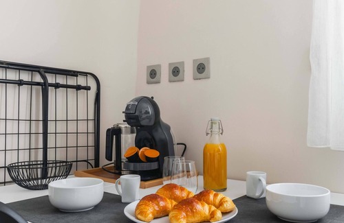 La cuisine est entièrement équipée avec une cafetière Dolce Gusto Krups, une bouilloire, et une machine a laver le linge, .