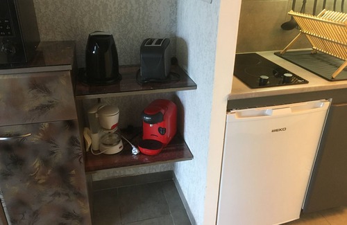 38m² studio fully equipped, TV, oven, microwave, toaster, washing machine, iron, large bay window, shower & apos; angle, large lawn between the residence and the beach, no car noise than waves. Available sunbathing lawn and children. Sunrise stunning sea views. Is full sea view. Terrace with table, chairs and umbrella. Large enclosed parking.