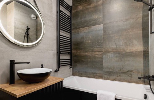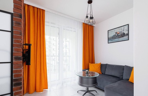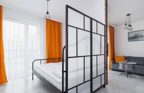 Furnished to a high standard, the studio apartment is a place where staying is a real pleasure. This unique apartment can comfortably accommodate 4 people - ideal for a stay with family or friends. The accommodation consists of a studio with a kitchenette, a bathroom with a bath and a balcony. The space is very functional and allows for a flexible and comfortable sleeping arrangement: guests can choose between a double bed - separated by a wall for added comfort - or a comfortable sofa bed. The sublime design of the apartment and the high quality furnishings guarantee a stay of the highest standard. The unique aura of the apartment is complemented by an attractive interior colour scheme with stylish decorative elements. The studio is equipped with modern amenities such as free Wi-Fi access and a Smart TV with access to cable channels - ideal for watching movies. Full bathroom and kitchen facilities enhance the independence of our guests. Complimentary toiletries, towels and bed linen are provided for a great start to each stay. The location of the apartment is sure to allow you to feel the buzz of the city amongst its main attractions. For guests arriving by car, a parking space is available in the garage. All these advantages make the apartment an ideal choice for a carefree stay in Katowice.