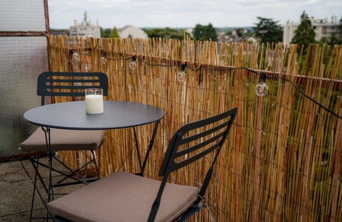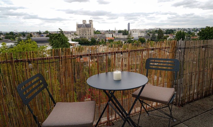 Located in Nantes, in a quiet residential area, this accommodation offers an ideal starting point to discover the cultural and natural richness of the city. Nantes is a dynamic city where historical heritage, contemporary art and sweetness of life mingle. The neighborhood offers a good balance between tranquility and local animation with its small shops, access to the banks of the Erdre and friendly atmosphere. The buses at the top and bottom of the street facilitate travel to the historic center, museums, or even theaters like Le Grand T. Travelers will appreciate the unobstructed view of all of Nantes, a real asset to feel immersed in the city while gaining height.