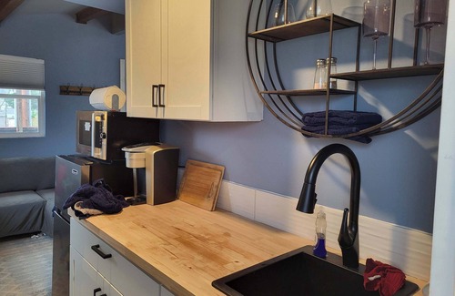 Soft bed, coffee & cream provided. This is a lovely space for a work-ationer for the winter.