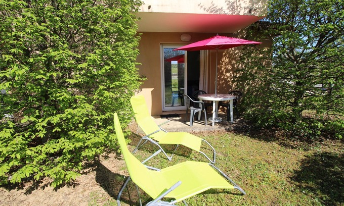 Rent studio of even foot with terrace, in residence of holidays ***. Near the center of Prayssac and 200 m from the River Lot, tourist village with all shops.