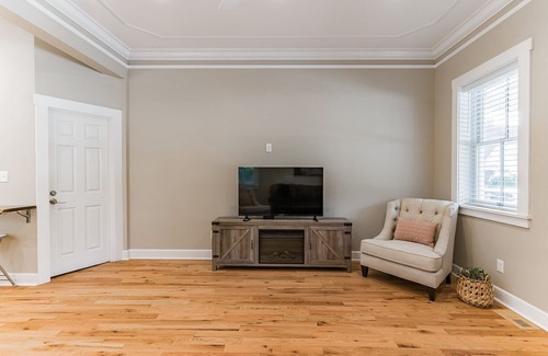 This home has a ton of space and was recently renovated with zoned heating and cooling to keep both levels comfortable. It has updated plumbing, new electric, and gorgeous hardwood floors that show off the architecture of this 1800s home. The kitchen has an open design with top-end stainless steel appliances and a high-top counter space for entertaining guests.