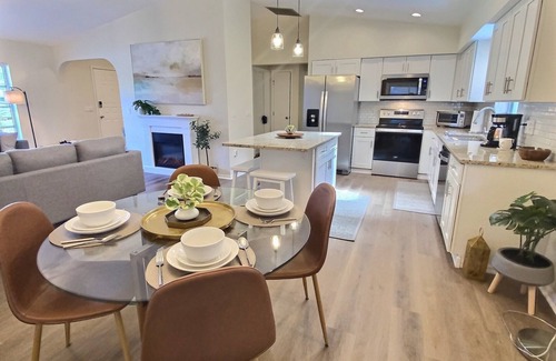 The home was completely renovated and furnished in 2022. The space is ideal for one or two couples, a family of three or four, small groups, or solo travelers. The two bedrooms are situated at opposite ends of the home for maximum privacy. The open space floor plan offers the ability for guests to be together in the same space without feeling crowded. The pool is great for cooling off on a hot day. It is 4.5 feet deep at the deep end. It is more of a plunge, play, and float pool than a lap pool. *The pool does have a chill in the winter months and can be heated if desired for an added fee*.