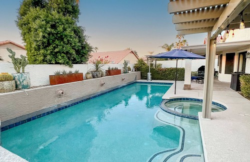 Weekly & Monthly discounts! This newly remodeled and furnished 2300 sq ft home has everything you need for your stay in Scottsdale. The pool/Spa and all landscaping has just been refinished 9/1/2023. Full kitchen, 2 brand new outdoor pergolas, outdoor gas grill, pool table. Recently retiled & refurbished spa & pool 9/2023 & all new landscaping. ALSO, a fire pit and a 8 person seating area has been added outside. Lovely, quite neighborhood. Minutes from 101, TPC Golf Course, shopping, hiking. Chill at the pool or adventure out to local activities. All new bathrooms. Very clean. Internet, TVs, and many more amenities. Master bedroom: King bed, private bath. Queen bed, 2 twin beds.