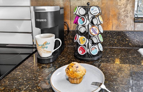 The kitchen is fully equipped with modern appliances and all the essentials for cooking meals, whether you're preparing a quick breakfast or a family dinner.