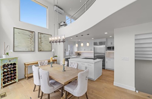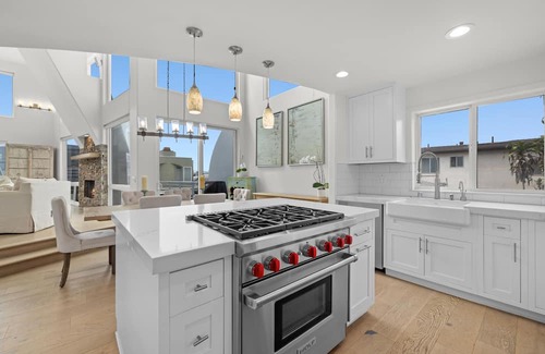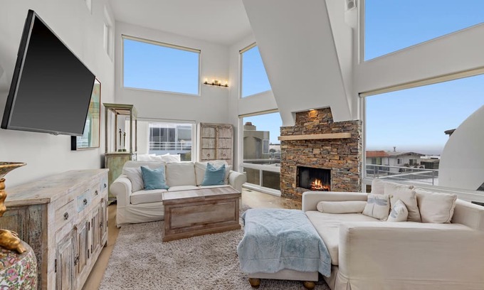 Stunning 4 story architecturally beautiful Manhattan Beach home with Magnificent Ocean Views located in the Sand / Gaslamp section! Steps to the sand, excellent restaurants, shopping, dining, coffee houses & the BEST surfing spot in CA! Beautiful ocean views from every room, BBQ & firepit on Ocean View deck! 4 bed 3 bath, 4th bdrm/office is a captivating loft with 180 degree views! Property sleeps up to 10 people. 3 parking spots. EV charging. Experience true beach living, incredible sunsets.