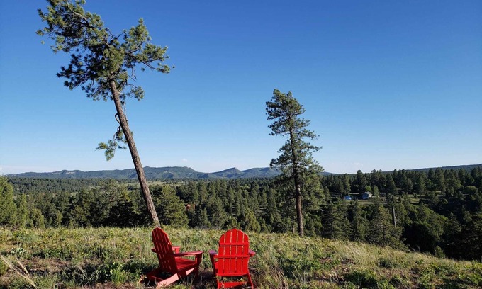 Escape to tranquility on a 40-acre mountain retreat just 12 minutes from downtown Durango. Enjoy epic views, a forested backyard, and hiking right from the doorstep. Featuring A/C, heat, a complete kitchen, a cozy wood-burning stove, and fast, reliable Wi-Fi.