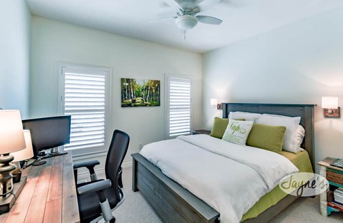 Bedroom 1 - King (Primary) with ensuite, walk-in closet, desk and walkout to deck