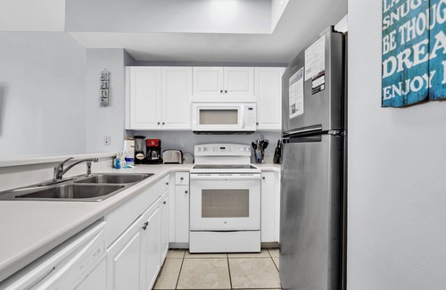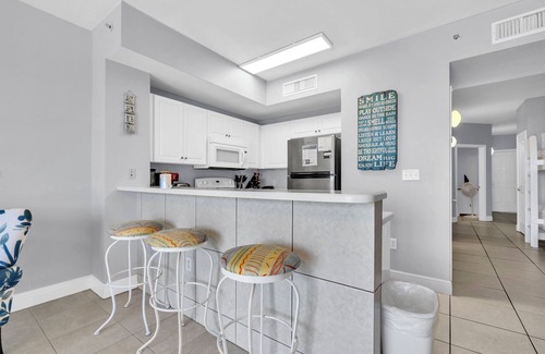 Celadon 203 is a beautifully decorated one bedroom, two bath condo. With the floor to ceiling windows and sliding glass doors, you'll have excellent views of the stunning gulf from your gulf front living room. This open floorplan allows you to take in the shimmering waters from your kitchen and dining area as well. Relax and enjoy your favorite beverage on your fabulous private balcony, taking in the view of the white sand beach as you watch the wave’s crash against the shore. With a king size bed in the master and bunks in the hallway, and a queen sleeper sofa in the living room, this condo sleeps up to 6 guests comfortably! Celadon Beach Resort also features amenities such as an indoor and outdoor heated pools with sundeck, a kiddie wading pool, hot tub, fitness center, tennis court, grill area, covered picnic area and moving screening room! Come check out why Celadon 203 is a family favorite!