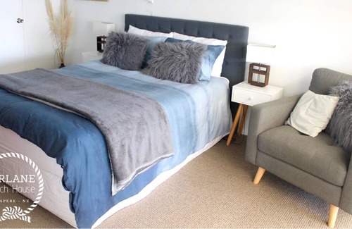 Unwind and relax in the spacious two-story living kitted out with a large kitchen fit for all your cooking needs. The Parlane Beach House is homely with a crisp and modern finish. The view from the master room, dining & lounge areas is hard to beat and the undercover two level deck makes for great indoor/outdoor flow. The huge lawn out front reaches right to the beach and ensures plenty of room for other outdoor activities. We keep it old school with books, puzzles and magazines, and also cover the essentials with indoor/outdoor sounds, TV/DVD and wifi. There are two queen rooms downstairs and one upstairs to easily accommodate groups of 1-6 (Please enquire within regarding groups over 6).