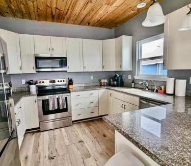 Stunning Beachfront 3 Bedroom Home, CoralMoonBeach offers accommodations in Bolivar Peninsula, a few steps from Gilchrist Beach. This beachfront property offers access to a balcony, free private parking, and free Wifi. Offering a terrace and sea views, the spacious vacation home includes 3 bedrooms, a living room, flat-screen TV, an equipped kitchen, and 3 bathrooms with a bath. Featuring air conditioning, this unit has a dressing room and a fireplace. The property has an outdoor dining area. The nearest airport is Jack Brooks Regional Airport, 59 miles from the vacation home.