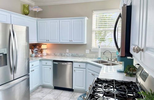 You will feel right at home with new furniture and comfortable new beds, high thread count bedding, a full kitchen with gas stove, ice maker, & keurig. Find your favorite coffee cup and watch the sun come up from the upstairs balcony.