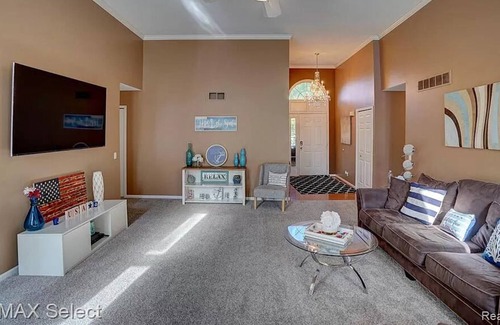 Wow! Don't miss out on this chance to rent this beautiful home located in Clinton Township. This 3 bedroom, 2.5 bathroom, 2,007 Sq Ft Brick Ranch was built in 2000 and has a wonderful layout! Beautiful bright white kitchen cabinets with granite counters, backsplash, and stainless steel appliances. Large Island for extra counter space for the Chef in the family! The Greatroom offers 10ft ceilings, crown molding, and a fireplace too! The master bedroom suite a queen bed with large walk-in closet, dual vanity, jetted tub, and shower too! The 2nd and 3rd bedrooms each have queen size mattresses. There is also an additional main floor room access through glass french doors that could be used as an office, family room, or this could be a 4th bedroom we have a full size air mattress for it! It also has main floor laundry, 2 car garage, paver patio in the back yard, and more! Just a few houses down is community path into park.