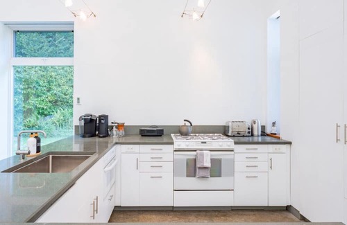 Meals and beverages are a breeze. The kitchen has one of the best-equipped coffee stations, with every type of machine (Nespresso, Expresso, Keurig, regular, French press, drip) and appliances for frothing and grinding. Cupboards hold an enormous array of equipment for any culinary endeavor. For the less adventurous, a great dinner can also be had by driving 10 minutes in either direction. For the best picnic spot in the county, the vast rock ledge next to the waterfall gets five stars! For cocktails, the living room holds our special Upstate Place, 'All In Good Taste Libation Station,' a non-alcoholic, fun, full bar and cocktail tray set up to get any stay off to a marvelous start.