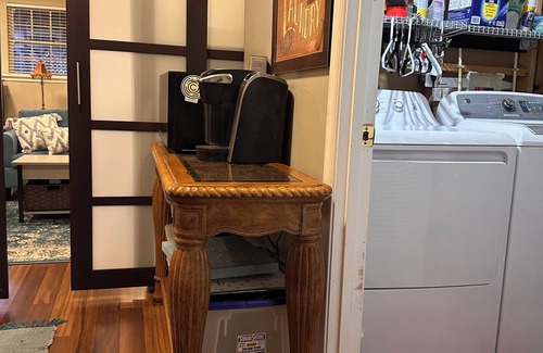 Fully furnished with model home designer furnishings in this LOWER LEVEL PRIVATE SUITE with tons of windows to bring light inside. The laundry room, a side by side refrigerator, microwave, toaster and Keurig machine are directly outside this private suite. Also included are all utilities, WIFI, Roku TV with HULU+ Live TV, Netflix, Prime, Paramount+, Peakcock, Gaia TV and more! Includes most sports: NFL and college football games, hockey, baseball, basketball, etc.