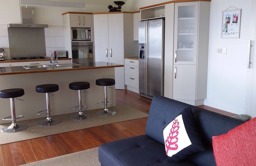 Your peace and serenity is ensured when you stay in this impressive house situated high in the hills of Coromandel overlooking the Harbour, Islands, vast countryside and Township which is only 4.5kms away.