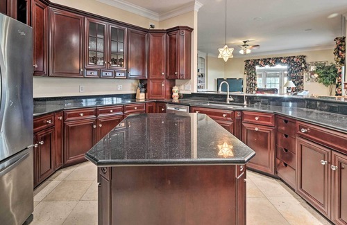 Live in luxury at this expansive Gettysburg home on the outskirts of the city. This spacious 6-bedroom, 7.5-bathroom vacation rental is suitable for larger groups and retreats! With plenty of room to relax both inside and out, you won’t even have to leave the property to have a great time. On sunny days, dive into the private infinity pool and enjoy the view or try your hand at a round of golf. During winter months, carve up the slopes at Liberty Ski Resort!