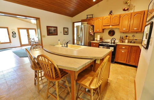 Step inside this stunning family cabin you will feel like you are back home. The cabin is surrounding by beautiful landscapes and ample green space. The bright family room, spacious living room, full size kitchen, 3 bedrooms and 2 full and half bath has all the comforts for your vacation. The cabin was designed and built for comfort, energy efficiency, expansive views in quality.