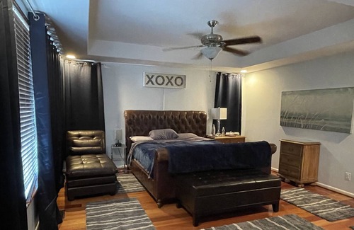- Master Bedroom with Master bath: King bed, 55’ TV (with DirecTv and app access (Netflix, etc)), dressers, wardrobe closet, 2 separate sinks, shower with multiple shower heads/rainfall shower, jetted tub, (sheets and towels provided)