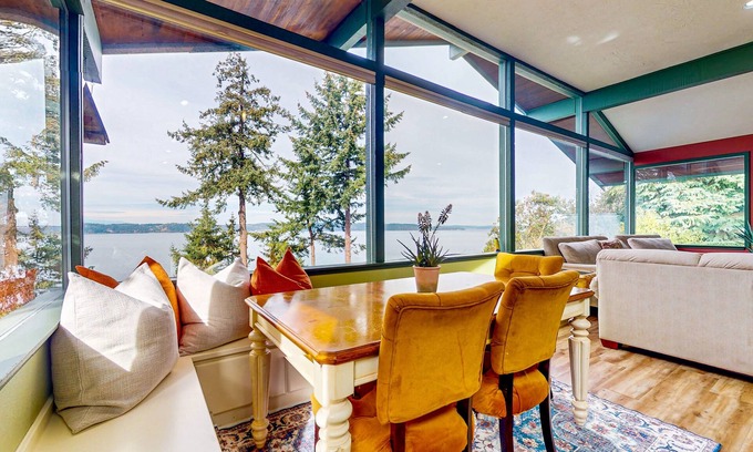 Perched in Federal Way, this charming house sleeps 12 comfortably as well as, offers breathtaking views of the ocean, Olympic Mountains, Maury and Vashon Islands, and even sightings of container ships, tugboats, and majestic bald eagles. The large hot tub invites you to relax and soak in the stunning surroundings.