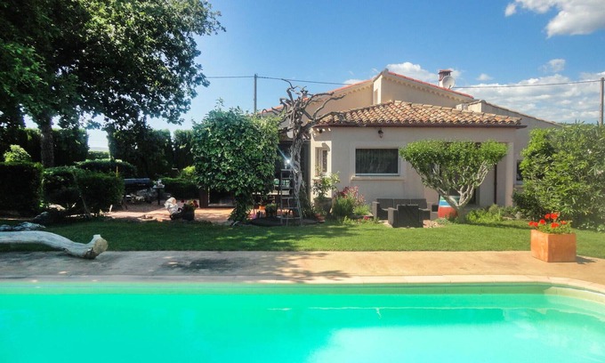 Charming and spacious villa with private pool in Caux, 34 km from the beaches of the Mediterranean. It has a large fenced plot. In 24 km you are on the beaches of the magnificent Etang de Thau and is 8 km from Pezenas. At 30 km you can spend a nice picnic day on the shores of Lake Salagou, where you can practice many water sports. Don't miss the panoramic walks of the spectacular Cirque de Mourèze or the pretty fishing villages like Mèze, Bouzigues or Marseillan with delicious seafood and regional specialties. As excursion possibilities you can visit the castles and abbeys or taste Grand Cru wines in the wineries. This region will enchant you!