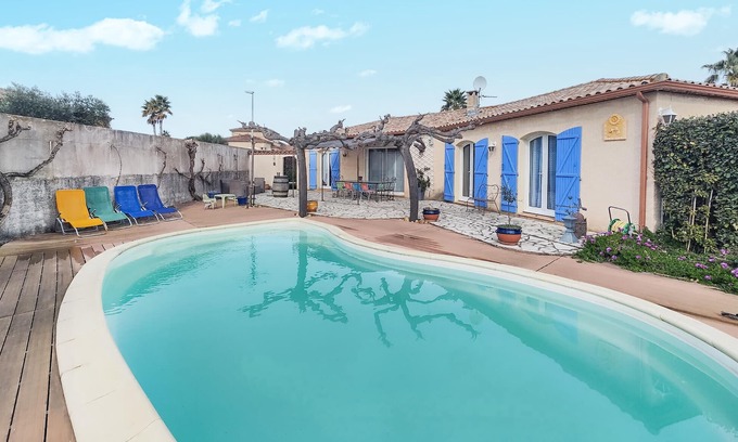 Yes, this Stunning home in Caux has a swimming pool. Check the Facility Overview section for details about the pool and other available facilities.