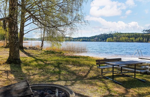 Welcome to this old, red wooden house in a nature scenery like from a novel by Astrid Lindgren. In the atmospheric rooms with cute wallpaper and charming details there is enough space for the somewhat larger family. The old stove in the dining kitchen adds to the historical atmosphere. While you cook, the kids can do a puzzle at the dining table. Don't forget the puzzle mat! Use your freshly picked blueberries to make delicious muffins to enjoy later on the open patio. Go to the lake and try your luck at fishing.