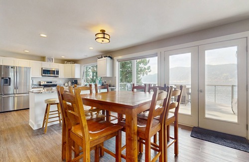 Experience the lakefront lifestyle at this gorgeous home offering unmatched views of Lake Chelan! With natural light flooding in from the large windows and a spacious deck with ample outdoor seating, everyone will be able to soak up the sunshine and fresh air from their own favorite space. After a long day of boating or jet skiing on the lake, everyone will have built up an appetite. Luckily, this home has a beautiful full kitchen and gas grill to make meal prep a breeze. Plus, the window in the kitchen opens to make a bar area where everyone can chill at as burgers cook on the grill. After watching the colors of the sunset reflect off of the water from the private dock, head inside and make a bowl of popcorn for a movie night in the living area. No one will have trouble dozing off after such exciting days here in Manson.