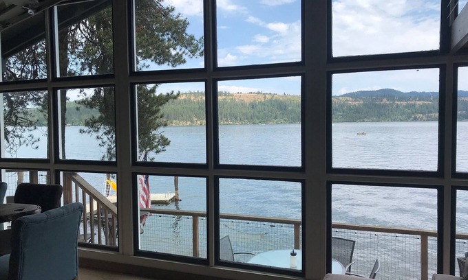 One of a kind Waterfront home. 3 Bedroom, 1 bath house just a few steps from the water. Starlink high speed internet new as of summer 2024. Outside enjoy the beautiful flat grassy lawn, a firepit next to the water for night time smores, and a dock with a dock slide. Play in the water with water toys included such as 3 kayaks, aluminum boat, and 3 paddle boards. Enjoy the decks on the outdoor furniture and tables, start a BBQ, and enjoy the amazing views of the water and mountains. At night stay warm by the fire it or gas firepit on the deck overlooking the lake. The cabin is located directly across from Harrison, which has great restaurants and bars, activities, community beach, an awesome ice cream shop and lots entertainment for the whole family. Inside the Cabin, there are 3 bedrooms. Two upstairs, 1 has a queen, the other has full bed. The bedroom downstairs has a queen bed with a couch that pulls out to a queen. The living room has the other couch that pulls out to a queen. The sleeping arrangements would be ideal for no more than 5 adults and 4 children. The kitchen is stocked with everything you would need to create amazing meals. Open up the garage door off the kitchen to create a big indoor outdoor space with plenty of room for entertaining. Come and make a lot of great memories in this lake front cabin.