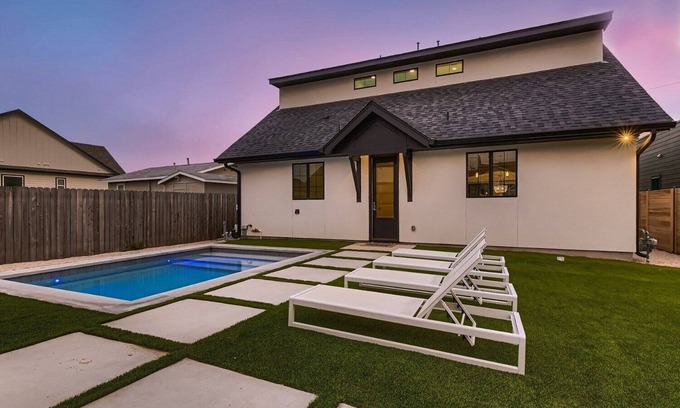 Welcome to the Georgetown Gem, a stunning custom-built home within walking distance to the renowned "Most Beautiful Town Square in Texas." Designed with entertaining in mind, this home features a pool with the option to be heated for year-round enjoyment, a rooftop patio, a spacious kitchen, and a detached garage equipped with ping pong, darts, and shuffleboard. The garage opens to a fully turfed backyard, creating the ultimate space for fun and relaxation. With ample sleeping arrangements for 10. This exquisite custom residence, completed in June 2023, was thoughtfully designed for visitors seeking to entertain larger groups in Georgetown. The professionally curated interior, featuring a blend of contemporary style and cherished antique accents, was furnished by one of Austin's top interior designers to create a welcoming and elegant atmosphere. The open-concept floor plan seamlessly connects the spacious living room, refined dining area, and grand kitchen, making it perfect for gatherings. Downstairs, the luxurious Master Suite offers a spa-like bathroom and a generous walk-in closet for your convenience. Upstairs, three additional guest bedrooms provide comfortable accommodations for your group to relax and recharge. Step into the backyard oasis, where you'll find a custom pool (with the option to heat) and an entertainment-ready garage equipped with a ping pong table and outdoor games. This space is ideal for both relaxation and fun, promising endless enjoyment during your stay. Guests will have exclusive access to the entire property, including all indoor and outdoor spaces, ensuring a private and memorable experience You will have complete privacy during your stay. Located in a peaceful residential area, Scenic Drive offers the perfect blend of tranquility and convenience. The neighborhood is surrounded by mature trees and well-kept homes, providing a serene and welcoming atmosphere. It's an ideal setting for families, couples, or solo travelers looking to experience the best of Georgetown. Highlights of the Neighborhood: Historic Downtown Georgetown: Just a short drive away, you'll find the beautifully preserved downtown area, featuring stunning 19th-century architecture, boutique shops, local restaurants, and lively events throughout the year. The Georgetown Square is a hub of activity, perfect for a leisurely stroll, a coffee date, or a night out. Parks and Nature: The neighborhood is close to several parks and outdoor attractions. San Gabriel Park, with its scenic walking trails along the San Gabriel River, picnic areas, and playgrounds, is a local favorite. If you're a nature enthusiast, don't miss the nearby Blue Hole Park, a picturesque lagoon surrounded by limestone bluffs, perfect for swimming and relaxing. Education and Community: Georgetown is home to Southwestern University, the oldest university in Texas. The university's presence adds a youthful energy to the town and offers cultural events, lectures, and beautiful campus grounds to explore. Shopping and Dining: Whether you're looking for a quick bite or a gourmet meal, the area offers a diverse range of dining options. Wolf Ranch Town Center and the Georgetown Shopping Center are nearby, providing access to major retailers, grocery stores, and specialty shops. Proximity to Austin: Georgetown's location makes it an ideal base for exploring the greater Austin area. With easy access to I-35, you can reach Austin’s vibrant downtown in about 30 minutes, enjoying live music, world-class dining, and cultural landmarks. Community Spirit: Georgetown is known for its friendly and tight-knit community. Whether you’re here for a short stay or an extended visit, you'll quickly feel at home in this welcoming environment. Drive offers easy access to a variety of transportation options, making it simple to explore the area and beyond. By Car: Georgetown is a car-friendly city, and having your own vehicle will give you the freedom to explore at your own pace. Scenic Drive is just minutes from I-35, the main highway that connects Georgetown to Austin and other surrounding areas. The drive to downtown Georgetown takes about 5-10 minutes, while Austin is only a 30-minute drive away. Public Transit: While Georgetown doesn’t have an extensive public transportation system, the Georgetown Transit provides a convenient bus service within the city. The nearest bus stop is just a short walk or drive away, offering connections to key destinations around Georgetown, including the historic downtown, shopping centers, and medical facilities. Walking and Biking: The neighborhood around Scenic Drive is pedestrian-friendly, with sidewalks and quiet streets perfect for walking or biking. Many local parks, including San Gabriel Park, are easily accessible by bike or on foot. Georgetown's Hike and Bike Trail is a popular choice for those looking to explore the scenic surroundings. Ridesharing: Services like Uber and Lyft are readily available in Georgetown, making it easy to get around without a car. Whether you’re heading to a restaurant in downtown Georgetown or planning a day trip to Austin, ridesharing provides a convenient option. Air Travel: The nearest major airport is Austin-Bergstrom International Airport (AUS), located about 40 minutes south of Georgetown. For private or charter flights, Georgetown Municipal Airport is even closer, just a 10-minute drive from the property.