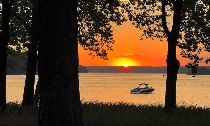 midcentury beauty located in hear of drowning creek, gentle sloping lot with a boat dock. Facing west for the best sunsets in Oklahoma.