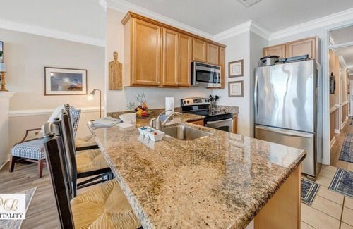 This third floor waterfront condo with balcony is perfect for a up to 4 adults and 2 children age 2 and under. With 2 king beds, and sleeper sofa, 2 full baths, fully equipped kitchen, washer and dryer, and access to all of Mariners Landing amenities. with 2 outdoor pools, indoor pool and hot tub. Kids Playground, Tennis courts, walking paths, Beach area, floating docks available for a nominal fee. Boat rentals on site through Bridgewater Marina. 18 Hole Golf course for a nominal greens fee. On Site Restaurant and Bar with Dinner options. Elevator available for use.