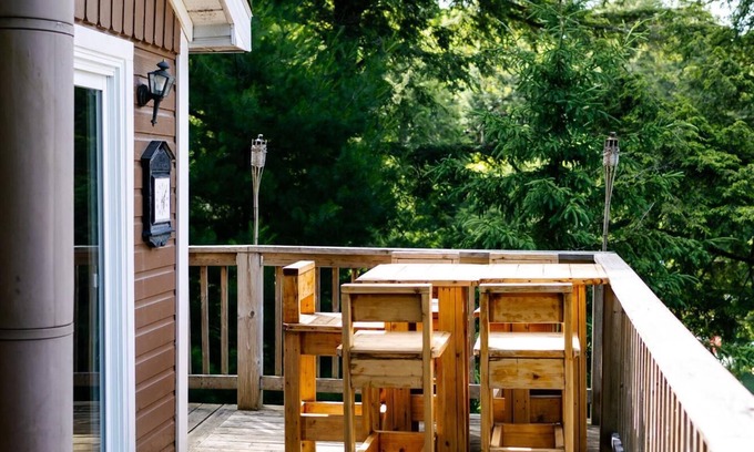 If you're looking to explore the lake, the cottage provides a paddle boat and paddle board for your enjoyment. You can soak up the sun on the loungers on the dock or relax on the large hammock while taking in the breathtaking views of the lake.