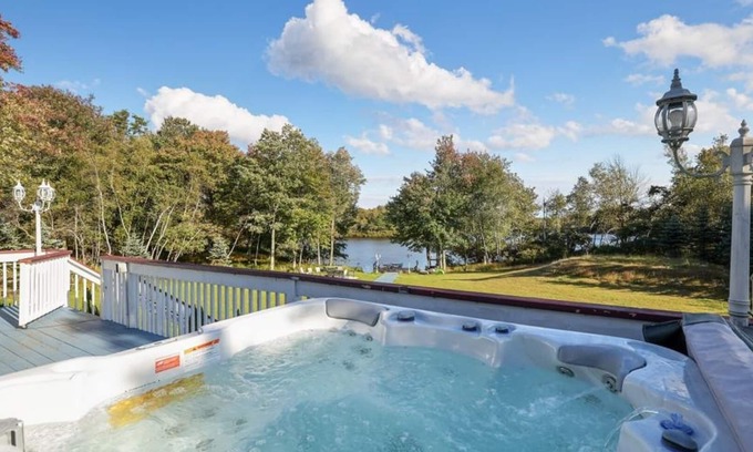 Stunning Lakefront, 1 King, 3 Queens, 3 Double Beds is located in Long Pond. Stunning Lakefront, 1 King, 3 Queens, 3 Double Beds provides accommodation, featuring Fireplace/Heating, Barbecue/Outdoor Cooking, Hot Tub, among other amenities. This House features Fireplace/Heating, Barbecue/Outdoor Cooking, Hot Tub, to make your stay a comfortable one.